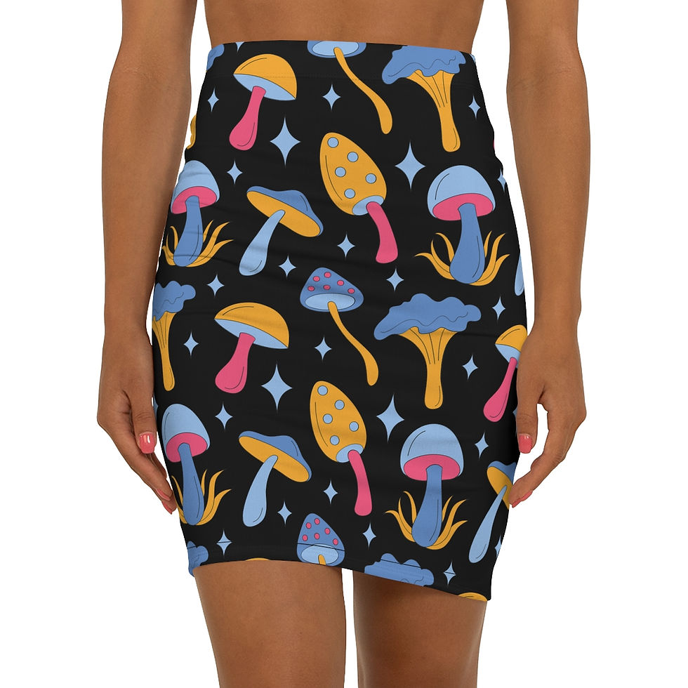 Silly Shrooms Long Sleeve Kimono Robe- Black